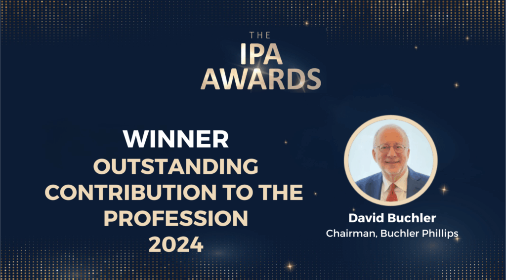At the heart of last year’s ceremony was a moment that perfectly captured the spirit of the profession: David Buchler, Chairman of Buchler Phillips, receiving the prestigious Outstanding Contribution to the Profession Award.